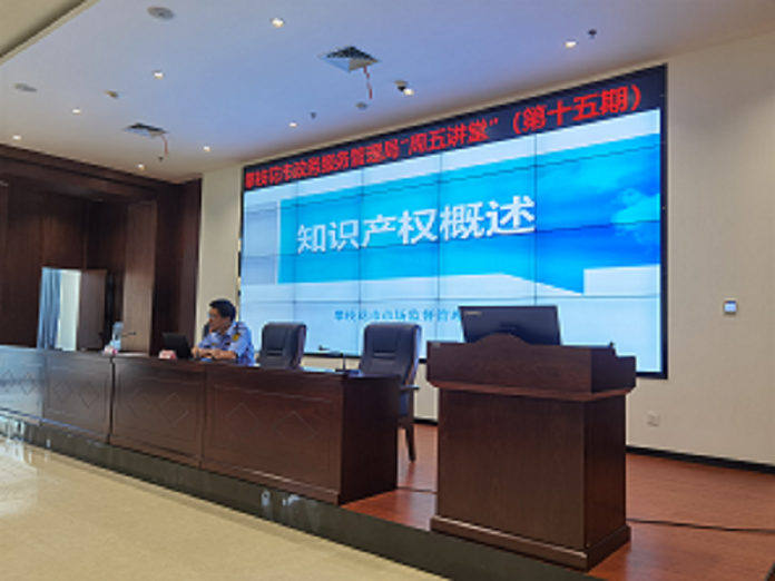 为优化营商环境,加强政务服务与知识产权保护协同,市政务管理局企业服务专区联合市市场监管局开展知识产权政策专题宣讲培训,窗口工作人员、相关行业企业及服务机构从业人员代表参加。