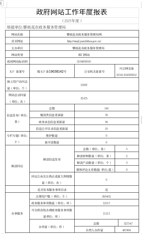 攀枝花市政务服务管理局网站工作年度报表(2025年度)