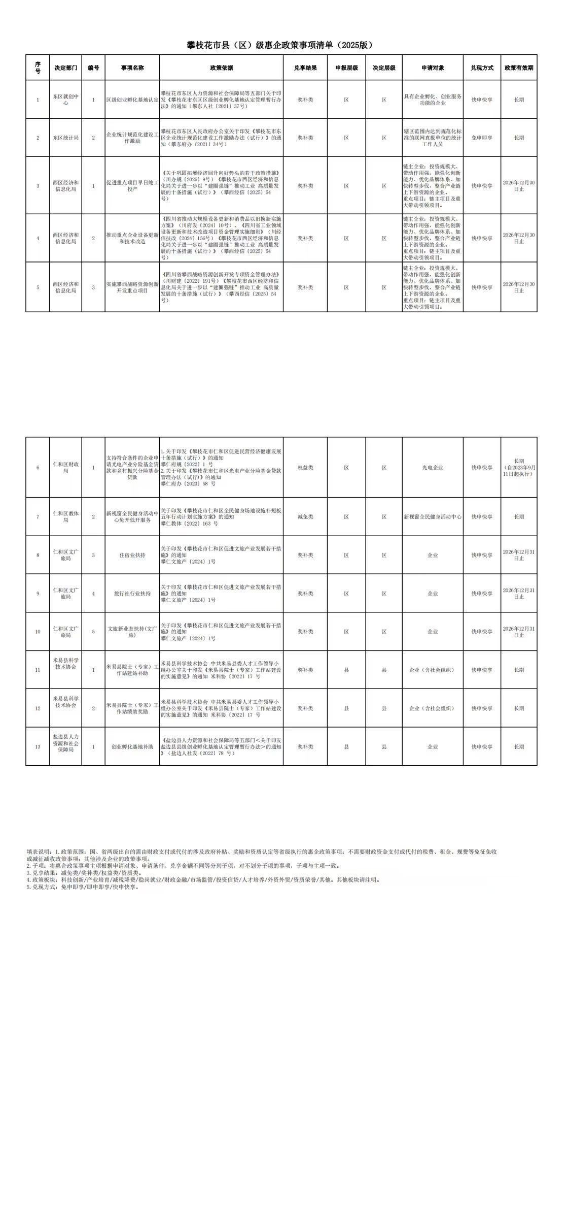 攀枝花市、县(区)级惠企政策事项清单(2025年版)(市本级49项,县区13项)(2026.1.13).xlsx